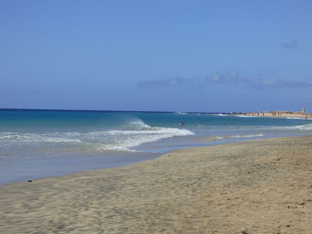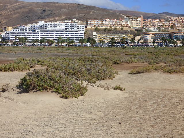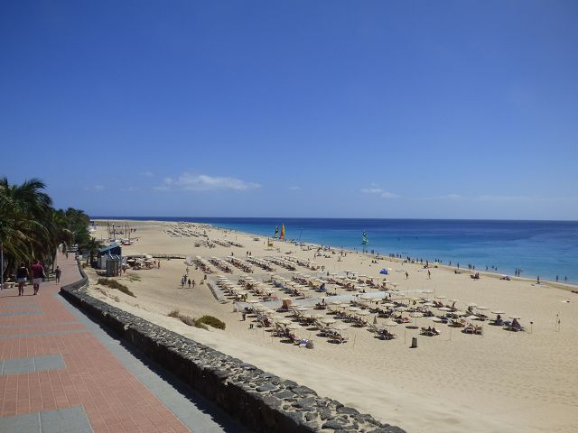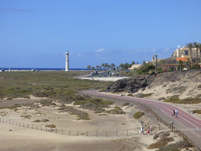 Hinter dem Leuchtturm beginnt die Playa de Jandia, an der etliche große Hotels liegen. Der feinsandige, lange Strand ist bei Schwimmern, Läufern, Spaziergängern, Windsurfern, Sonnenanbetern und FKK-Anhängern gleichermaßen beliebt.