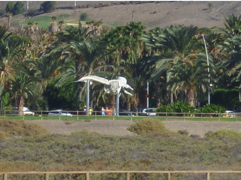 Auf der Höhe der Playa Matorral könnt Ihr von der Promenade aus eine besondere Attraktion entdecken. Ein 14,5m langes Walskelett thront dort auf einer Wiese. Es stammt von einem Pottwal, der im Dezember 2004 dort gestrandet ist.