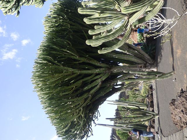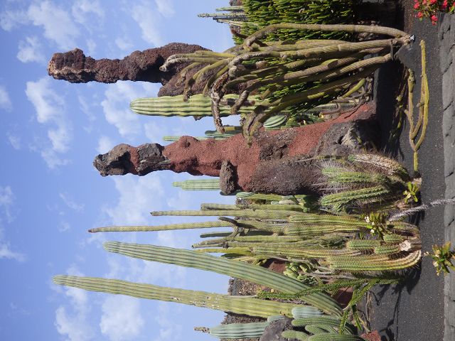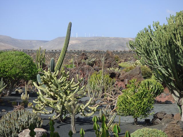 Neben den Kakteen wollte er auch Sukkulenten wie Euphorbien und Kleinias anbauen, die Auswahl der Pflanzen überließ er einem Botaniker und zwei Kakteensammlern. Es waren insgesamt 4.500 Kakteen und Sukkulenten von 450 verschiedenen Arten, die er liebevoll in der Landschaft drapierte. So schuf er ein gigantisches Gesamtkunstwerk, in dem die Besucher die Perfektion der spektakulären Anlage bewundern können. Dabei bildet das Grün der Pflanzen einen tollen Kontrast zum schwarzen Vulkangestein.