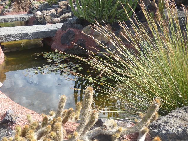 In der Vulkanasche, die früher in dem Steinbruch abgebaut wurde, gedeihen Kakteen in allen möglichen Formen und Größen. Das liegt daran, dass sie den Tau speichern, diese Erkenntnis wird auch für den Weinanbau auf Lanzarote genutzt. Manrique ließ Säulen aus aufgequollener Lava stehen, die er als Kunstwerke sah.