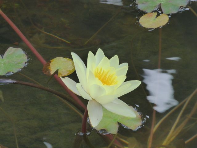Den Mittelpunkt des Gartens bildet ein kleinerer Teich, der mit Seerosen und Thalias bepflanzt ist.