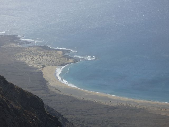 Wagemutige erreichen den unberührt wirkenden Strand über einen steilen Weg, der in der Nähe des Aussichtspunktes beginn. Wer es bequemer mag, unternimmt eine Bootsfahrt vom nahe gelegenen Örtchen Orzola.