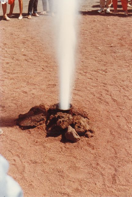 Nach den ganzen Eindrücken wartet ein weiteres Highlight auf Euch. Am Ende des Parkplatzes vor dem Restaurant El Diabolo sorgen die Mitarbeiter des Nationalparks mit spektakulären Vorführungen für spannende Augenblicke. Sie gießen Wasser in ein Rohr, das in den vulkanischen Boden eingelassen wurde. Durch die große Hitze in dem Erdloch entsteht eine gewaltige Fontäne aus Wasserdampf, die explosionsartig aus dem Rohr hinausschießt. Die Rohre reichen etwa 6m tief, dort herrscht eine Temperatur von rund 600 °C. Das ganze Spektakel dauert nur Sekunden und ist auf jeden Fall ein Erlebnis.